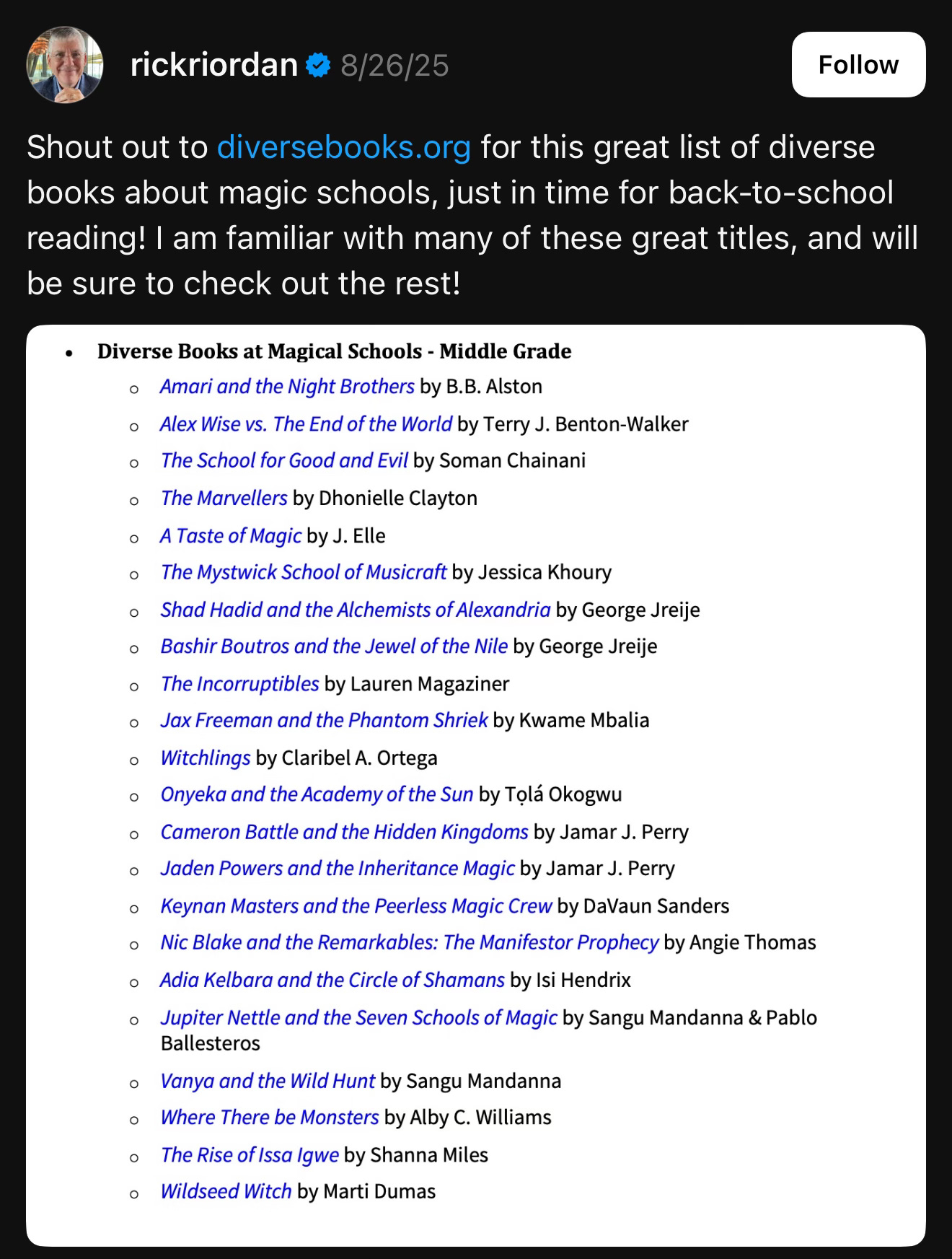 Dude, if Rick Riordan gave me a shout out, I would be on cloud 9 for like a week.